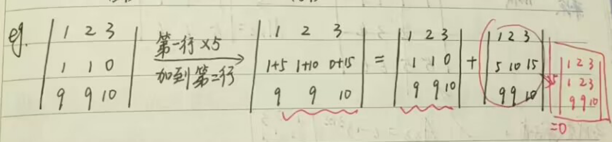 性质3:若某一行乘以k等于用k乘以D(由一到多 n行乘以k即用k的n次方乘以D)
