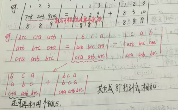 性质5:行列式的某一行(列)为两数的和(差)的形式