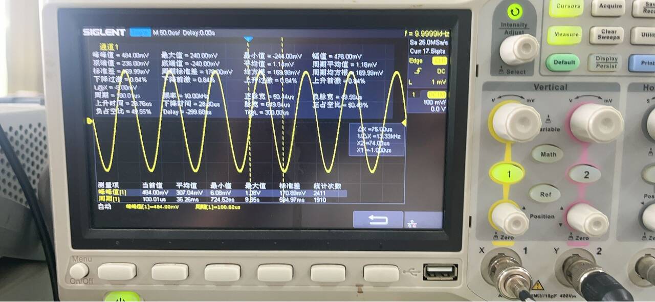 正常生成10khz的正弦波 - 性能分析:输出精度、切换速度等指标的实测结果。
