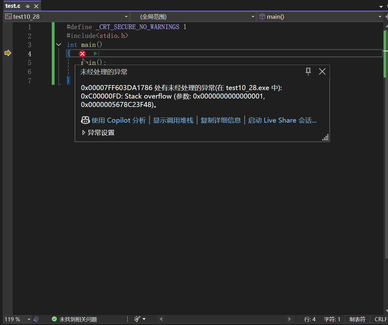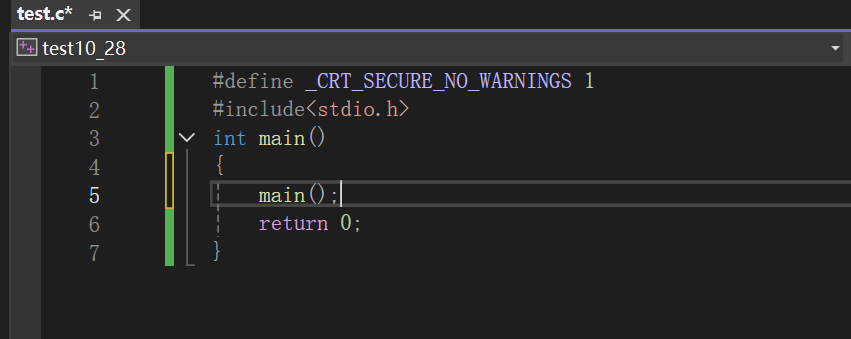 比如这个,史上最简单的函数递归。不过运行的时候会出现"stack overflow"的报错,因为你在main函数内部再次调用main函数,不断递归下去就造成了栈溢出的问题,因为每调用一次函数都需要在栈区申请一块内存空间。
