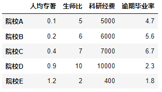 对五所研究生院进行评价,构造数据如下: