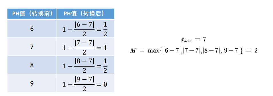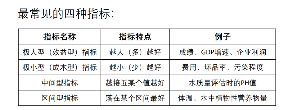 中间型指标:指标值既不要太大也不要太小,取某特定值最好(如水质量评估 PH 值 )