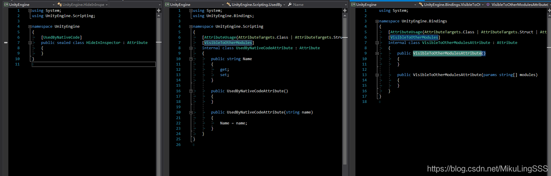 首先,说一下我这两天的收获,标识->它确实只是一个标签(如果你就随意的使用的),我看了一下system.dll和unityengine.dll的源码,就以我们最常用的 [HideInInspector] 这个来看一下,