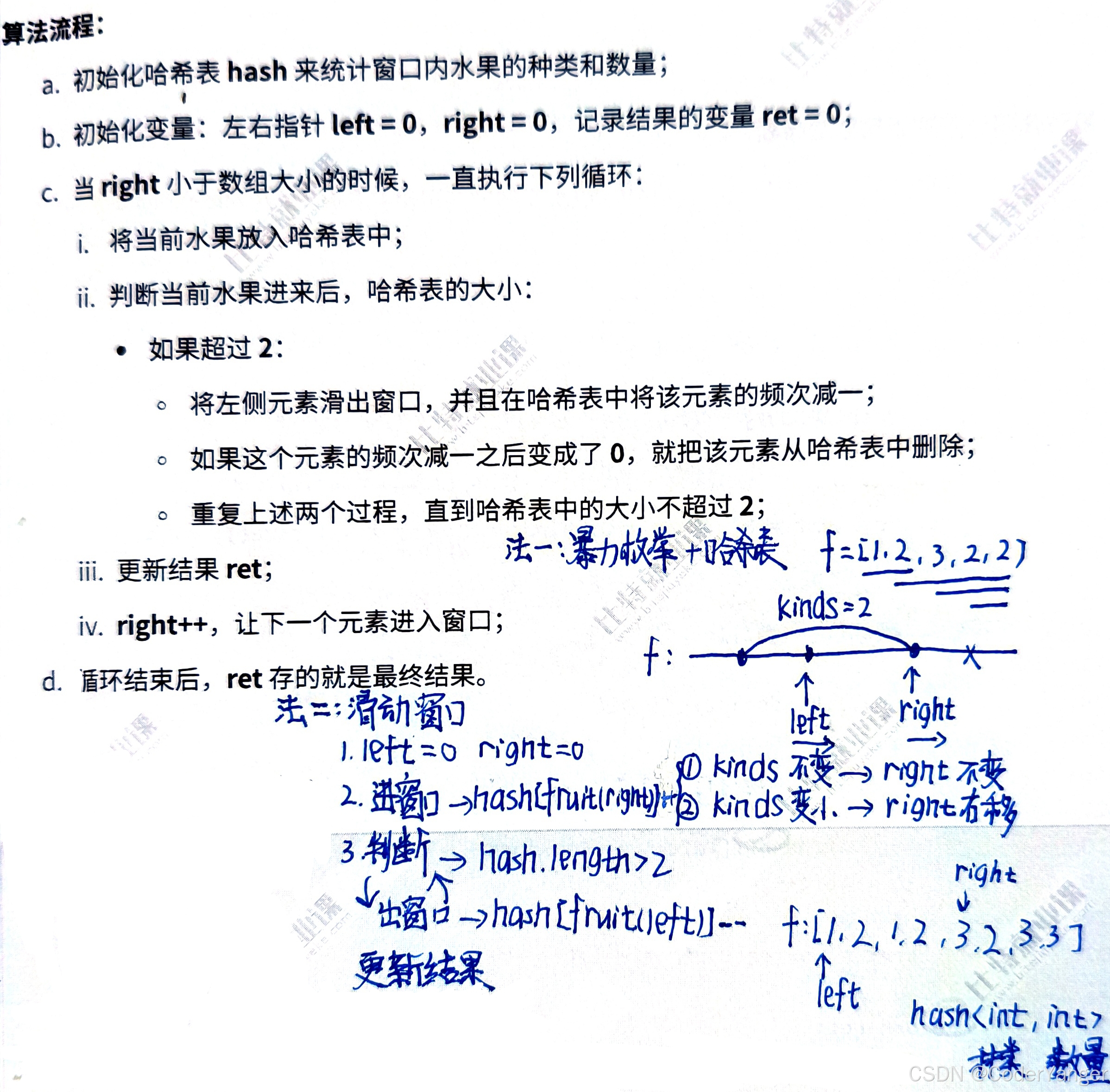 for(int left=0,right=0,kinds=0;right<n;right++){