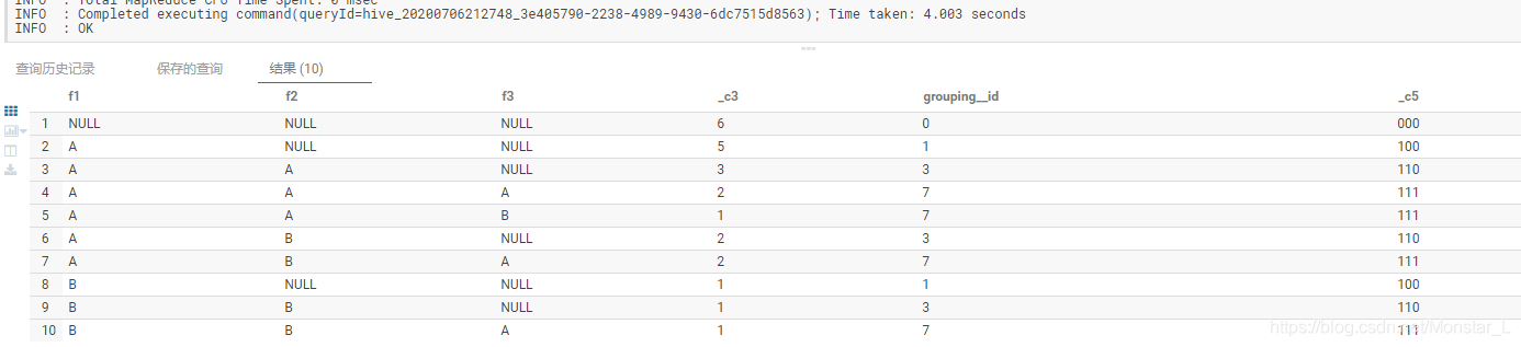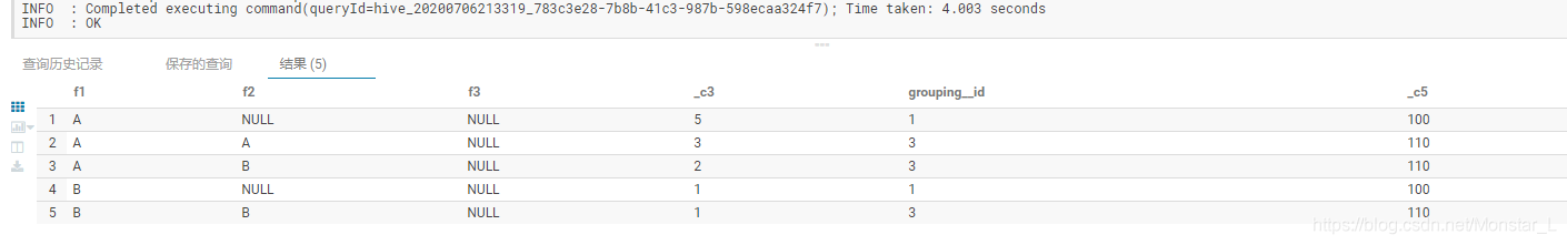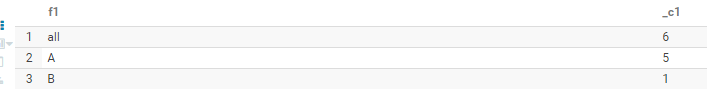 f3 grouping sets((f1),(f1,f2));数据结果:
