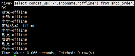select concat_ws('-',shopname,'offline',NULL) from shop_order;