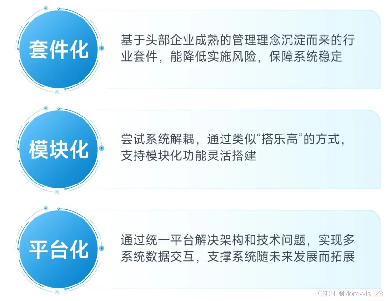 基于此,厂商们通过实践验证不同路径的可行性。诸如,面向集团型企业,尝试以套件化、模块化、平台化等方案来解决多工厂、多组织、多业态模式下MES开发难题,以便带来更好的服务。