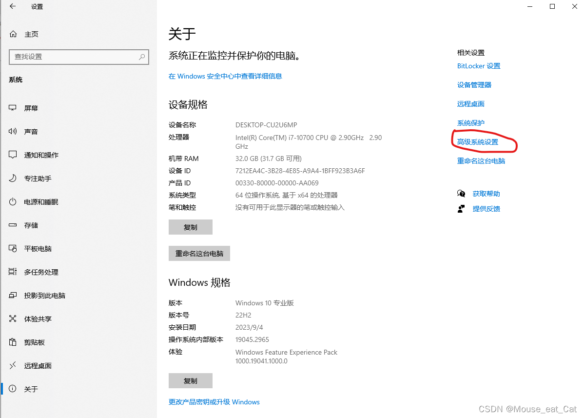 点击系统---关于--高级系统设置