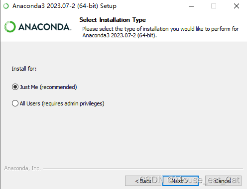这里可选择Just Me只为当前用户使用,或者为所有用户All Users