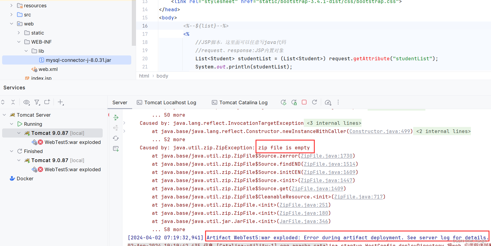 所以我把之前模块的mysql包复制到了WEB-INF/lib下,结果Tomcat反而启动都启动不了。
