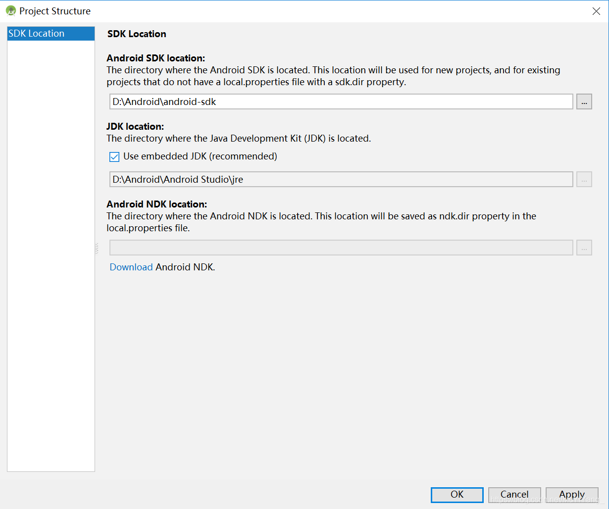 5.点击Configure->Project Defaults->Project Structure,配置SDK环境位置