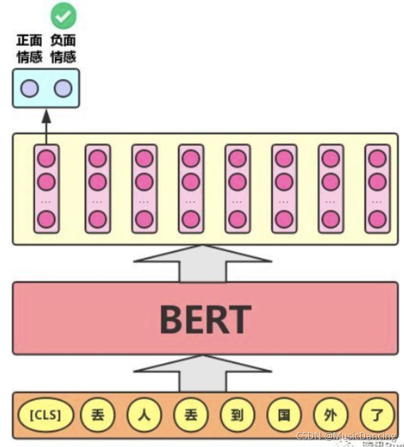 对于文本分类任务,BERT模型在文本前插入一个[CLS]符号,并将该符号对应的输出向量作为整篇文本的语义表示,用于文本分类。