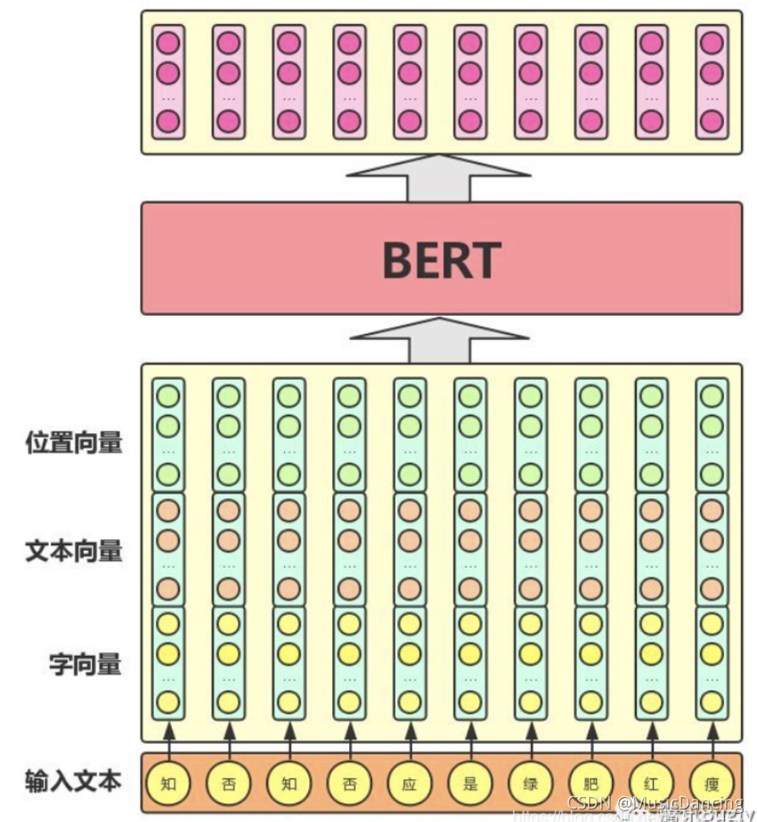 因此,BERT模型的主要输入是文本中各个字/词的原始词向量,该向量既可以随机初始化,也可以利用Word2Vector等算法进行预训练以作为初始值;输出是文本中各个字/词融合了全文语义信息后的向量表示。