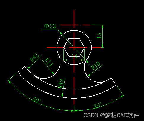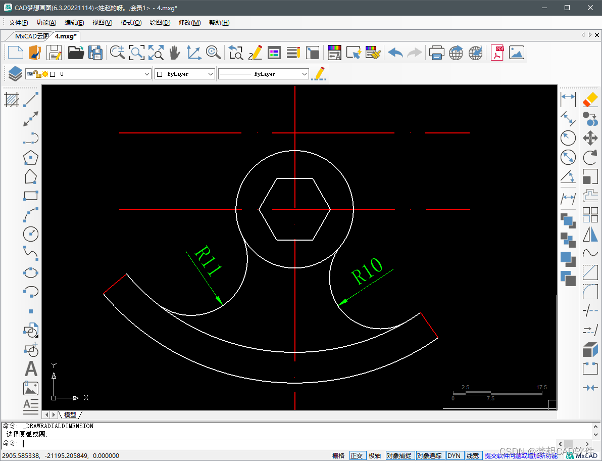 7.使用CAD圆角命令,圆角半径分别为10和11对对象进行圆角命令
