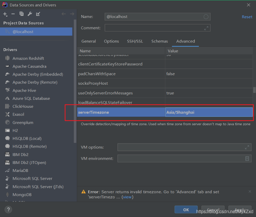 四、IDEA中配置MySQL出现Server returns invalid timezone问题解决方法