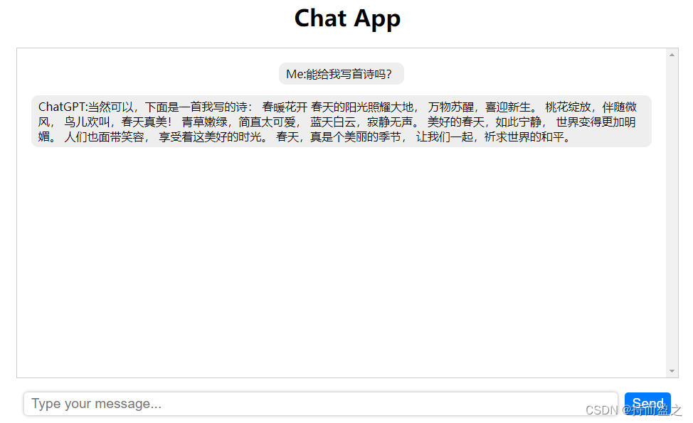 至此,基于chatGPT API的服务端和网页端搭建完毕,以下是效果展示: