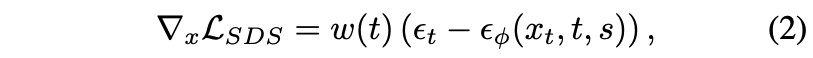 分数蒸馏梯度(按像素计算)可以被表示为: