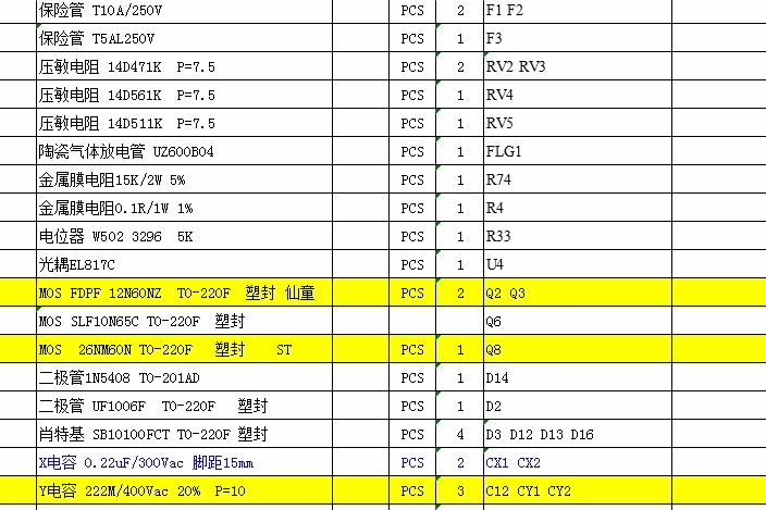BOM表是PCB制作和元器件采购的关键参考文档。本文提供了60V5A半桥LLC串联谐振开关电源的BOM表,详细列出了所需元器件的型号、规格及供应商信息。