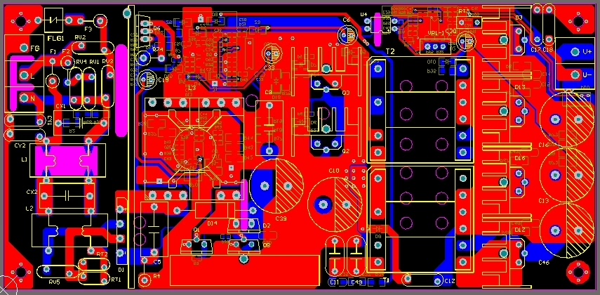 PCB设计是将电路设计转化为实际硬件的重要环节。本节将附上60V5A半桥LLC串联谐振开关电源的PCB设计文件,并针对关键部分进行详细说明。