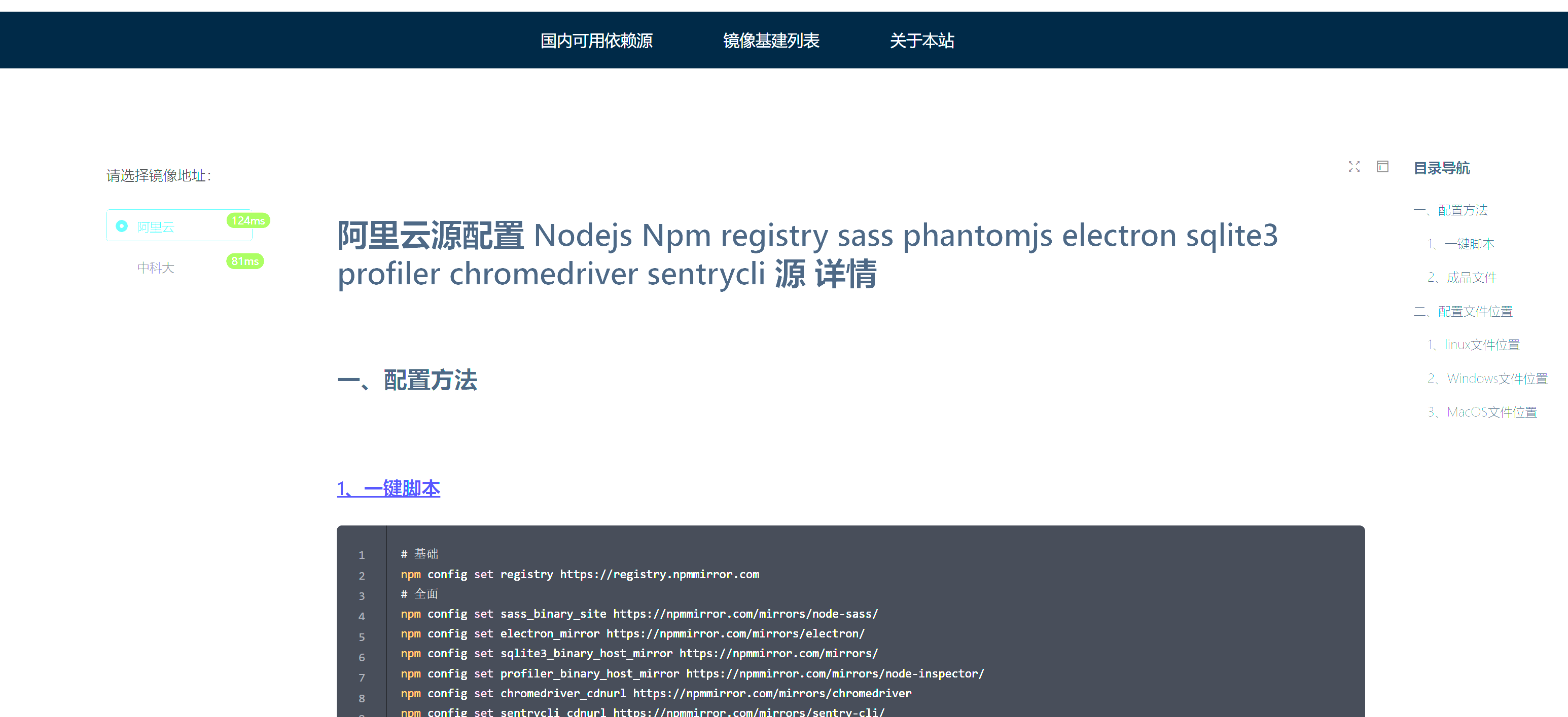 阿里云源配置 Nodejs Npm registry sass phantomjs electron sqlite3 profiler chromedriver sentrycli 源 详情