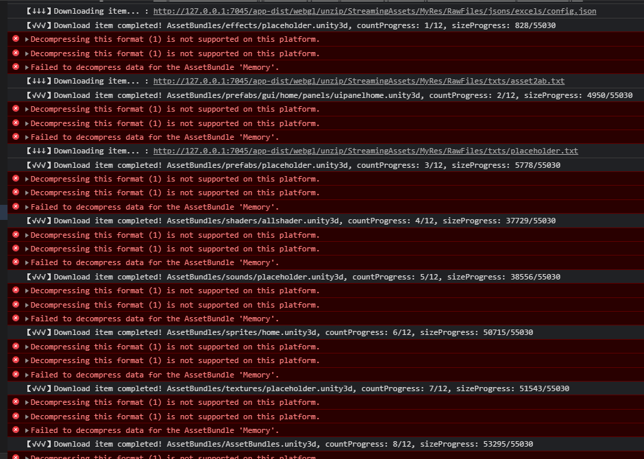 原因:ab只支持LZ4, 启用BuildAssetBundleOptions.ChunkBasedCompression