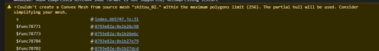5、警告:Couldn't create a Convex Mesh from source mesh "shitou_02." within the maximum polygons limit (256). The partial hull will be used. Consider simplifying your mesh.