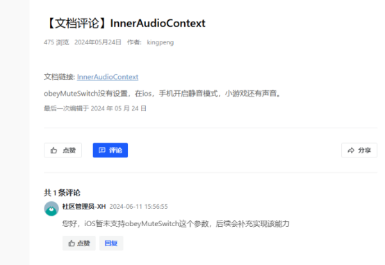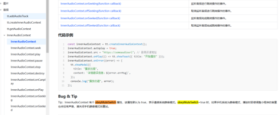 图2:抖音对于长音频,提供了 obeyMuteSwitch 参数,可选是否将“系统静音”应用于小游戏。