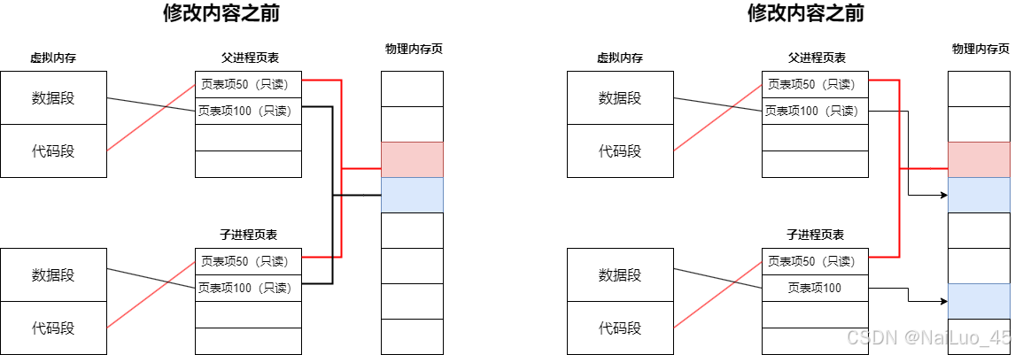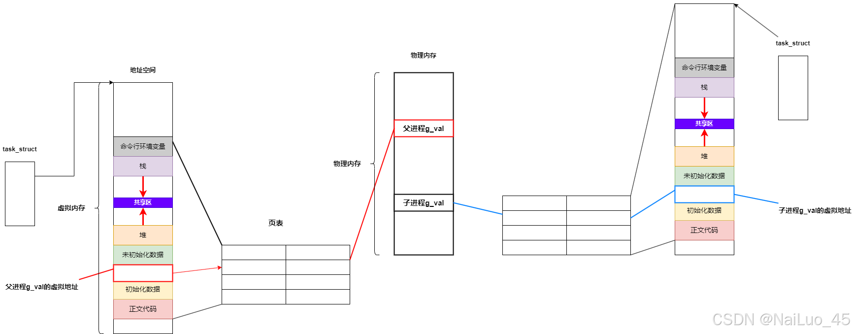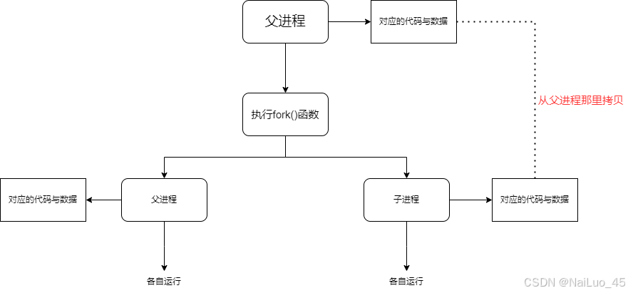 如果成功,fork就有两个返回值,为什么会有两个返回值?因为fork之后,会创建一个子进程,代码父子进程共享,数据各自开辟空间,私有一份(写时拷贝)。