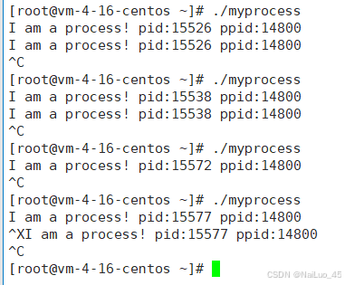 多次运行再结束进程,发现pid一直再变,而ppid不变;