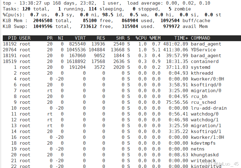 可以看到进程的pid为615,ppid为18255;一般在Linux,任何普通进程,都有他的父进程。