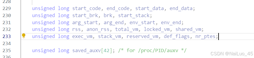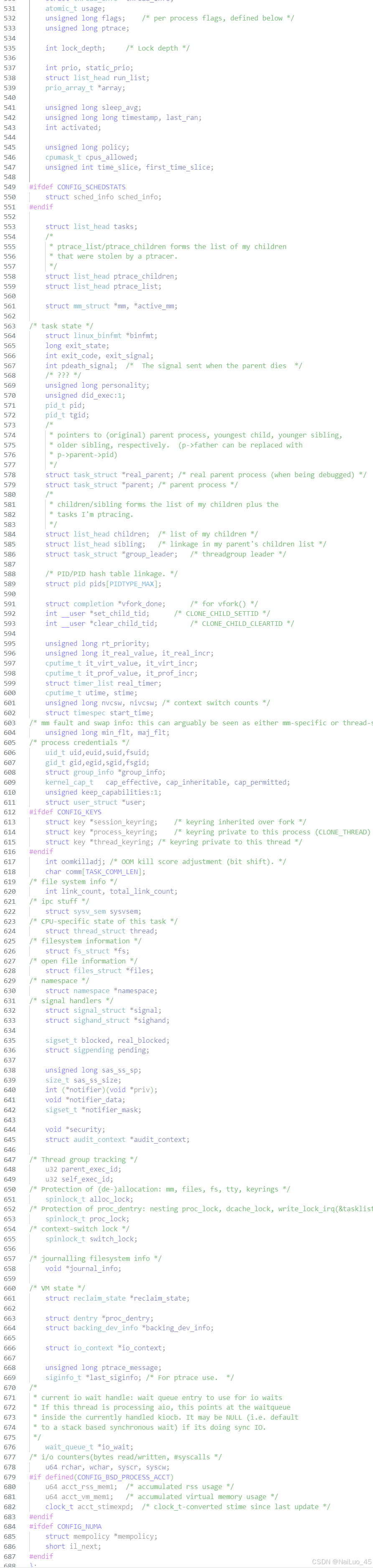 这是早期版本(linux-2.6.11.12)源码中的task_struct ,Linux中的PCB叫做task_struct。