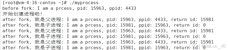 printf("after fork, 我是子进程: I am a prcess, pid: %d, ppid: %d, return id: %d\n", getpid(), getppid(), id);