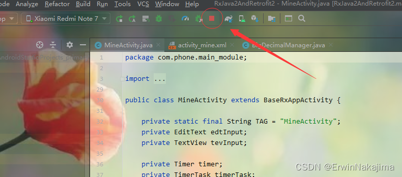 注意:如果不点这个红点,而是直接拔掉连接手机的数据线,这样这个红点就会消失,重新连接手机之后,再运行代码到Android 手机,修改的代码还是不生效(令人难以置信,Android Studio 真是万事皆有可能)。。。