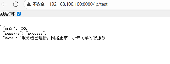 在浏览器访问:http://192.168.100.100:8080/ip/test