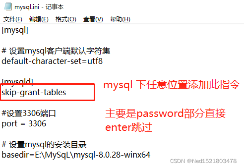 2、编辑目录中的my.ini文件(这个配置文件自己提前建立:新建在bin文件统计目录中),文本编辑或者用相关软件也可;