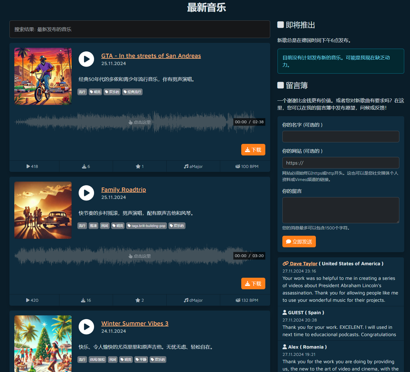 德国创建推出的一项音乐音频素材服务,提供免费可商业用途的音频资源,帮助部分媒体人士、摄影师、电影制作人、教育机构等等能够免费使用音频素材,迄今为止网站已经制作了 600 多首歌曲,拥有 10+注册用户,如果你只是个人使用,可以使用免费版的歌曲库,相反可以购买高级歌曲库,对比高级版会有许可证明、可下载 WAV 格式等等。