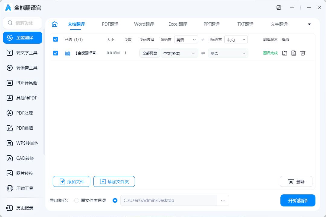 比如你需要翻译一份50页的英文报告,只需把文件拖进“全能翻译官”,选好语言,剩下的交给它就行。