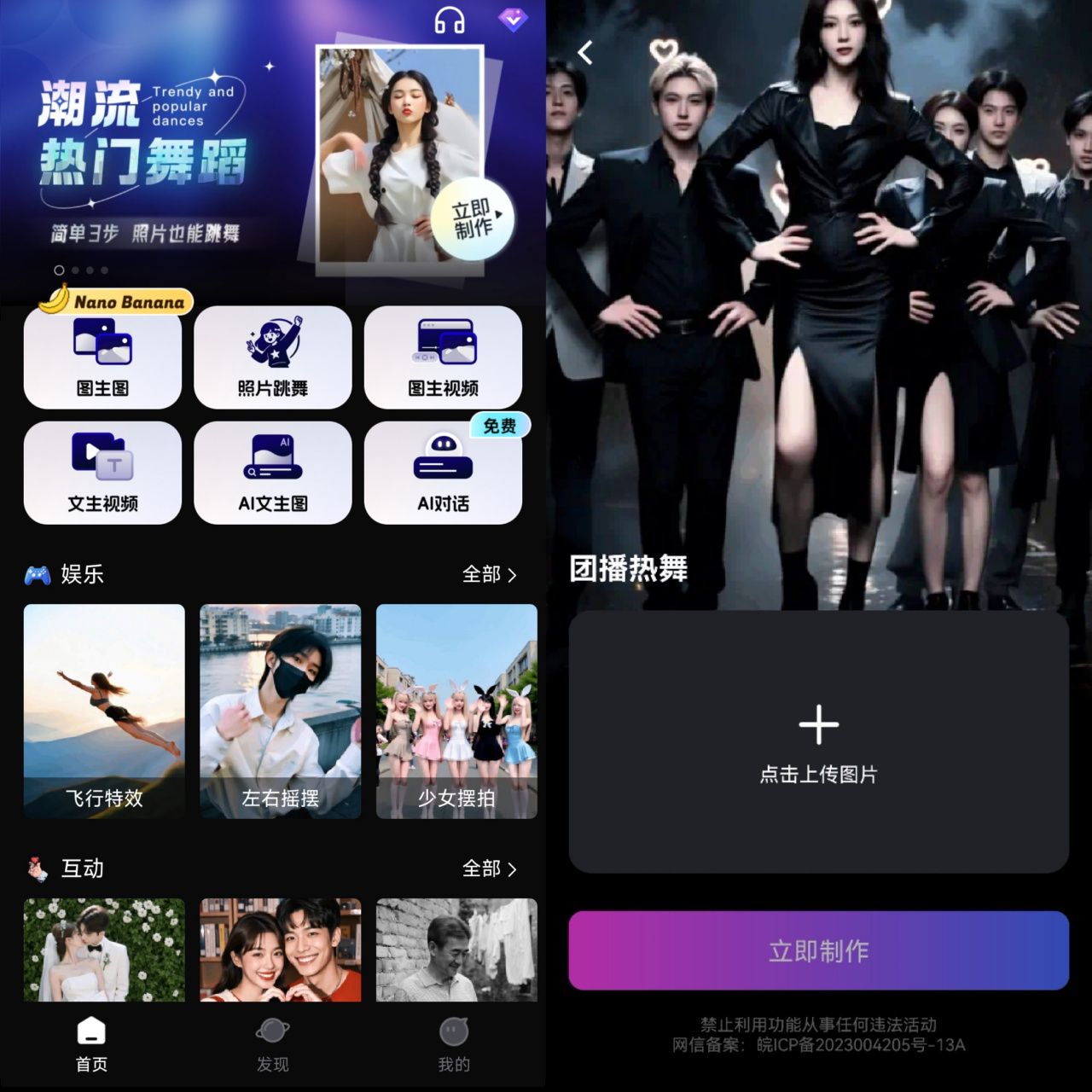 专用工具:和 PS 比起来,专门的智能视频创作工具就友好太多了。这些工具会直接做好 “眨眼”“微笑” 等细微动作模板,还有 “基础舞蹈”“潮流手势舞” 等整体跳舞模板,你不用懂任何设计原理或舞蹈编排,只要根据自己的需求挑选喜欢的模板,工具就会自动帮你把动态效果 “画” 在照片上,全程不会出错,新手也能轻松驾驭。