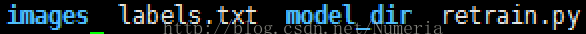 3.最终你需要将图片文件夹,标签文件夹,以及标签txt存放在同一个目录中,如下:其中images为装满图片的文件夹,labels.txt为所有的标签,model_dir文件夹里面为所有图片的标签,retrain.py为训练的脚本。