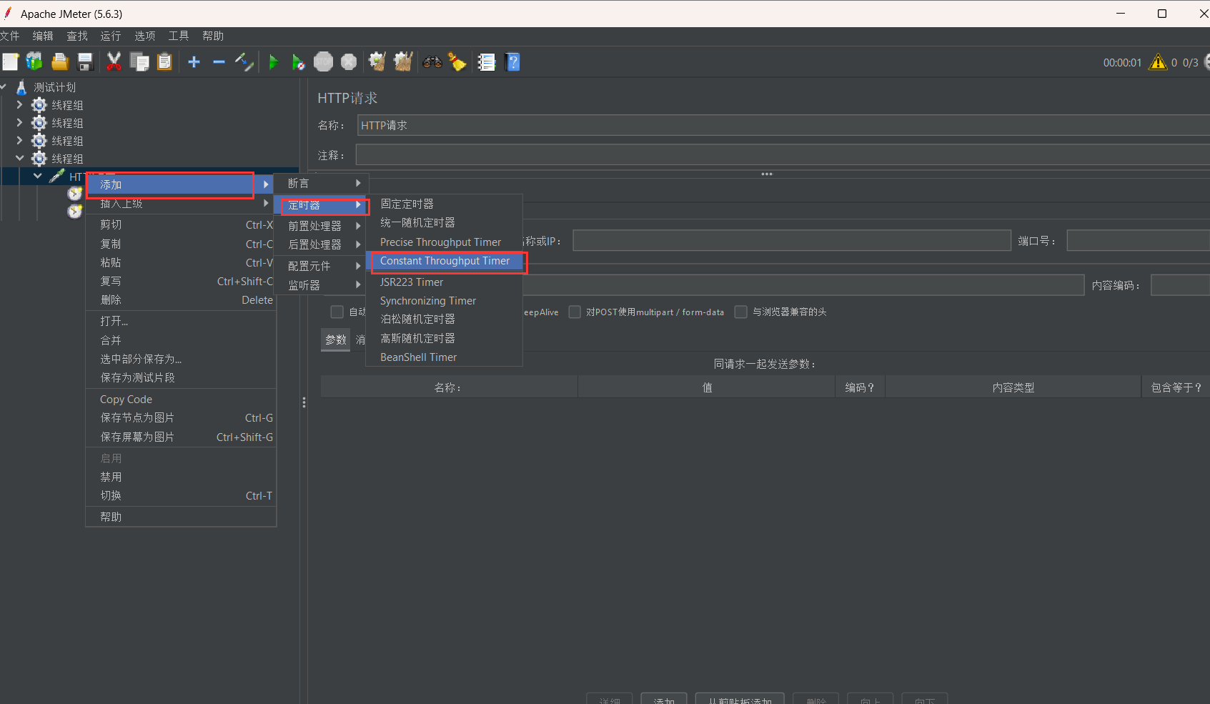 位置:测试计划线程组-->HTTP请求(右键添加) 定时器Constant Ihinput Timer