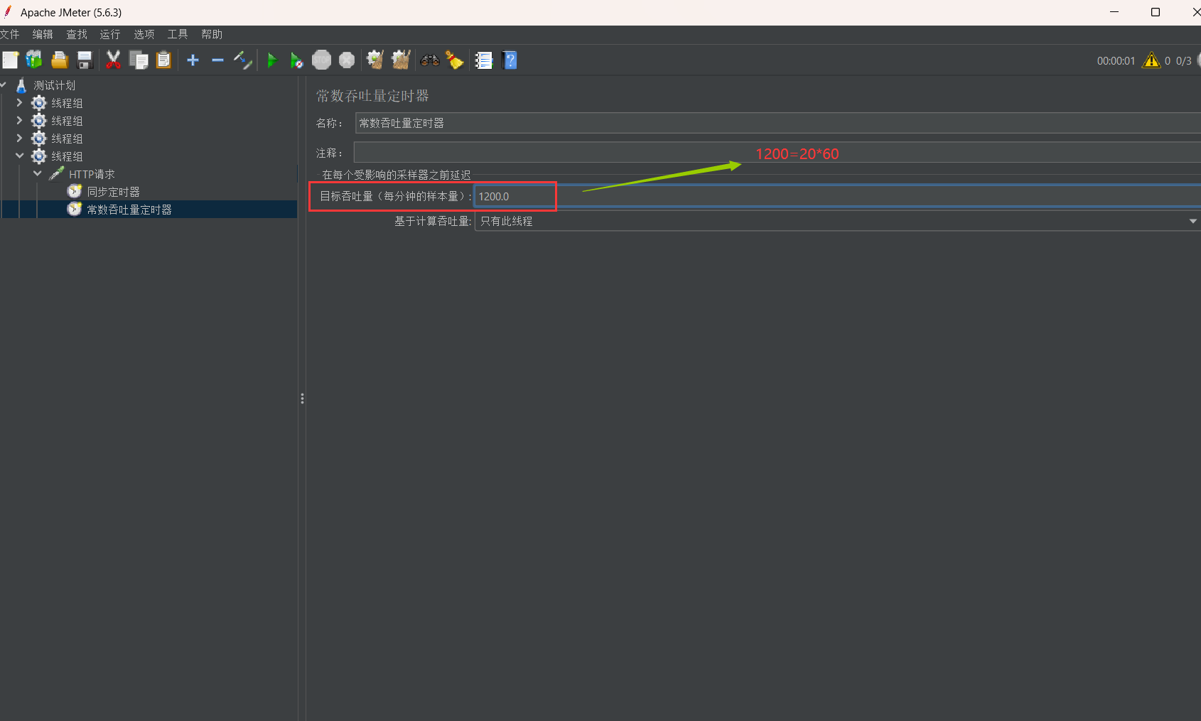 作用:让JMeter按指定的吞吐量执行,以每分钟为单位