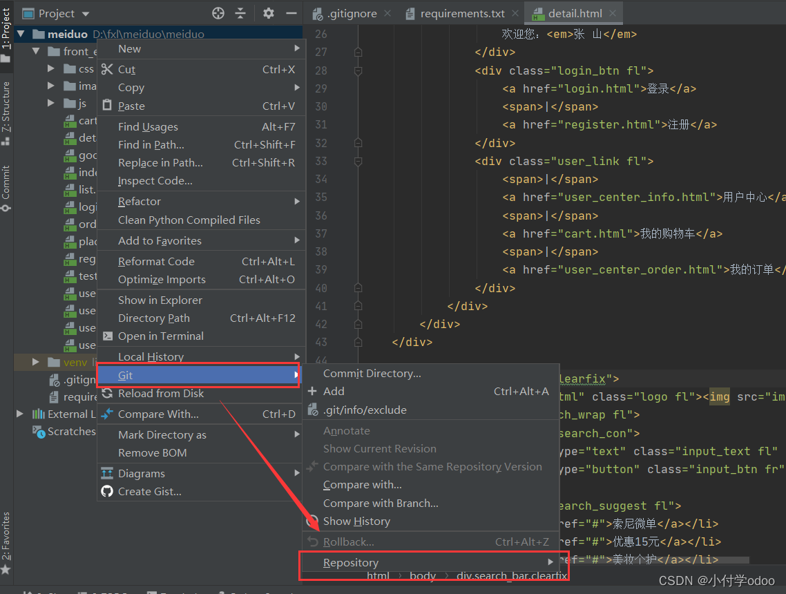 再次右击要提交的项目:Git --> Reponsitory