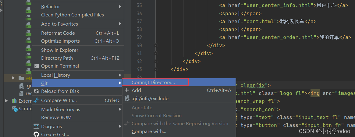 右击你要提交的项目,Git + Add它。新添加的文件的话得Add, 然后再Commit Directory...