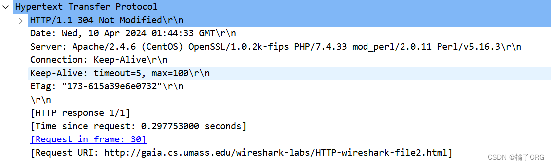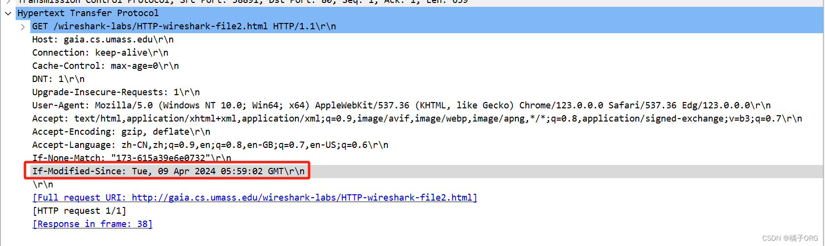 (3)现在,检查第二个HTTP GET请求的内容。 您在HTTP GET中看到了“IF-MODIFIED-SINCE:”吗? 如果是,“IF-MODIFIED-SINCE:” 头后面包含哪些信息?