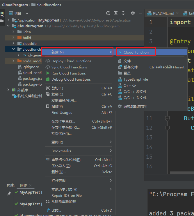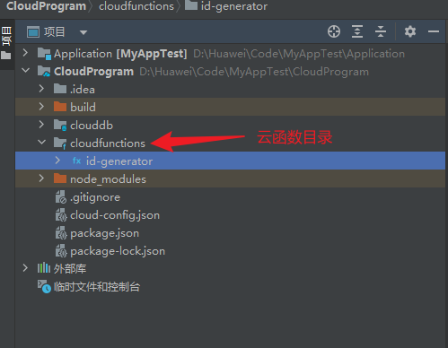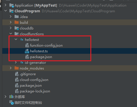 IDE会在cloudfunctions下新建一个hellotest的云函数