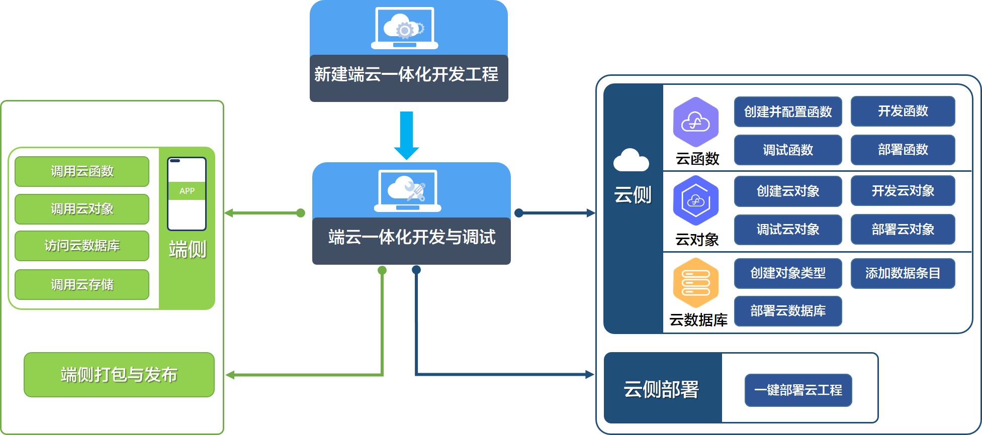 端云一体化开发是HarmonyOS对云端开发的支持、实现端云联动。云开发服务提供了云函数、云数据库、云存储等服务,可以使开发者专注于应用的业务逻辑开发,无需关注基础设施,例如:服务器、操作系统等问题。