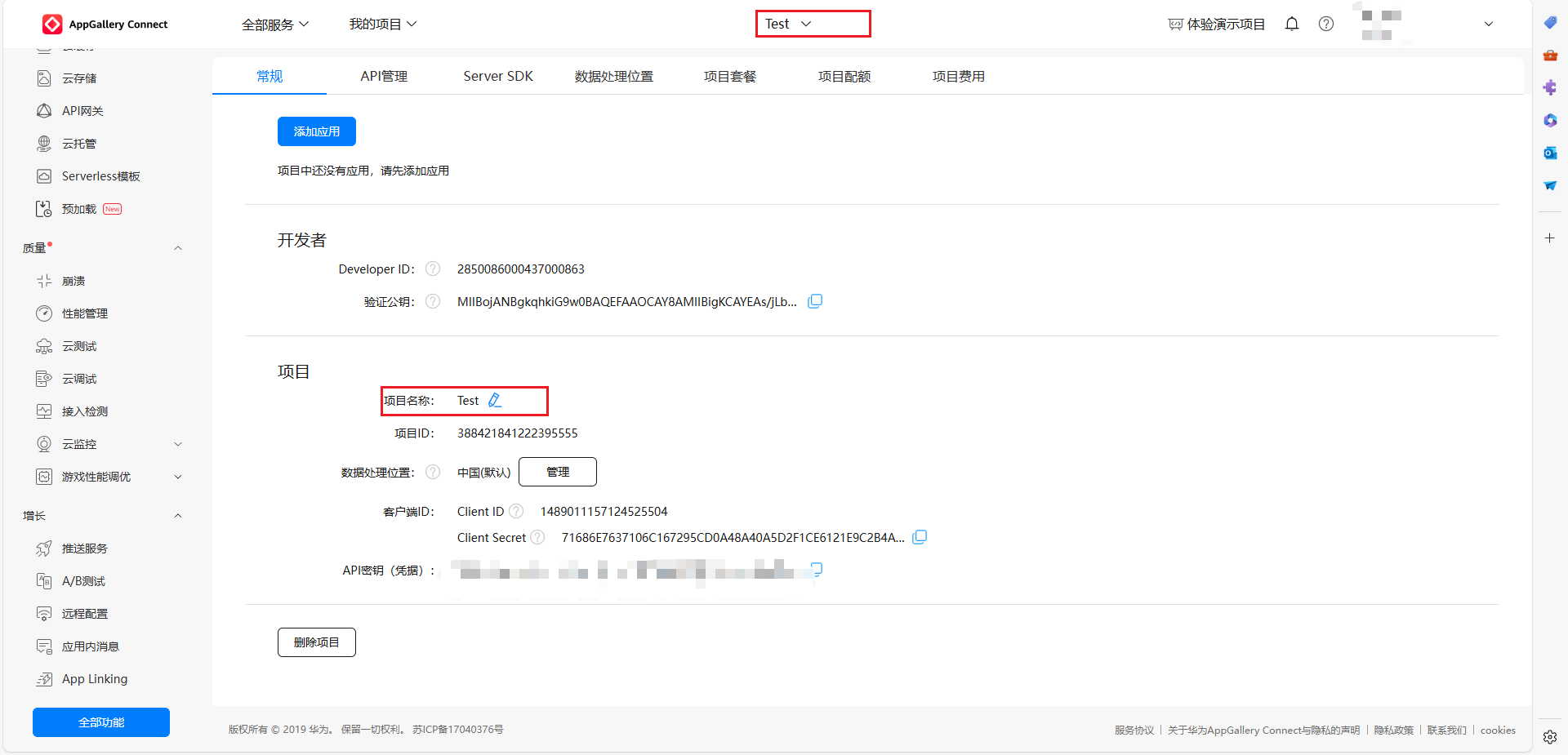 回到项目界面,可以看到应用一栏已经有我们刚才配置的相关信息了