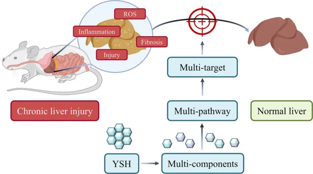 慢性肝损伤(CLI)是一种比较复杂的疾病,需要有效的治疗干预。依山红(YSH)是一种经验衍生的治疗方法,在治疗慢性肝损伤方面具有安全性和有效性。然而,人们对依山红的生物活性成分和多方面作用机制了解的不是很清楚。