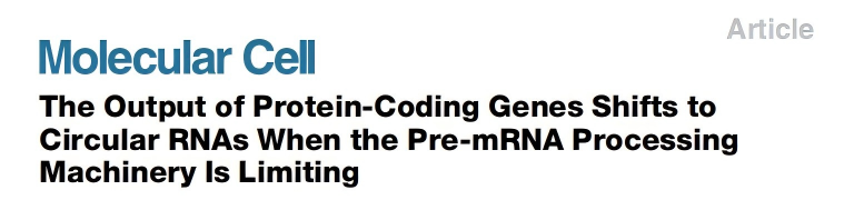 Liang D,Tatomer DC, Luo Z, et al. The output of protein- coding genes shifts to circular RNAs when the pre-mRNA processing machinery is limiting[J]. Molecular cell, 2017,68(5):940-954.e3.