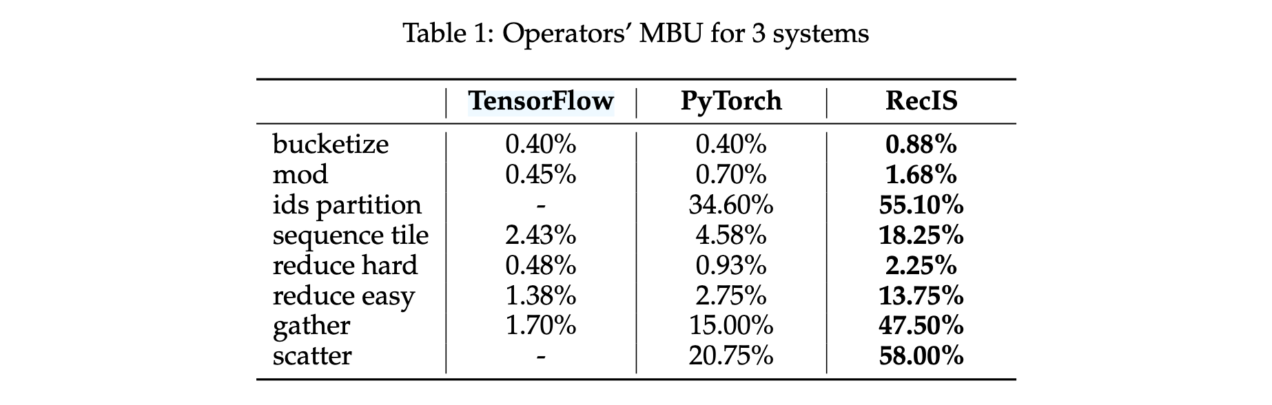 RecIS提出基于带宽的Roofline模型,专注于模型带宽利用率(MBU),为稀疏组件性能评估提供新方法。